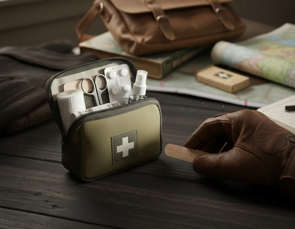 Základné pomôcky prvej pomoci sú kľúčové. Obväz, pár náplastí, dezinfekcia a základné lieky proti bolesti sú malé položky, ktoré urobia veľký rozdiel pri drobných zraneniach. Malé ploché puzdro v peňaženke alebo vrecku je základom sebestačnosti.